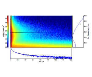 In addition to the temporal evolution of the emission spectra that can be investigated, spectra free from artefacts can also be obtained with this technique. Care needs to be taken in the acquisition of excitation and emission spectra of TiO2 samples, weakly emitting under excitation with standard Xe lamps. As is the case of highly scattering samples such as PTFE, experimental artefacts can be superimposed with the emission of the sample.17-19 This can be circumvented by the use of appropriately powered lasers as excitation sources, as demonstrated in this application note.