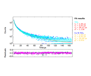 In this application note, by means of time-resolved photoluminescence spectroscopy, we study the dynamics of charge carriers in copper-nitrogen-titanium oxide (Cu-N-TiO2).