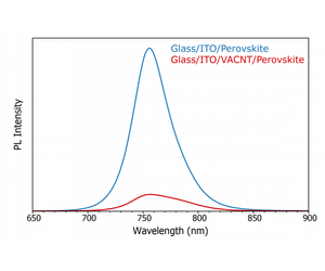 The simplest method to investigate the impact of the VACNT layer on the hole extraction efficiency is by measuring the PL spectra of the Glass/ITO/Perovskite and Glass/ITO/VACNT/Perovskite and comparing their integrated PL intensities. If the addition of the VACNT layer enhances hole extraction the PL intensity from the VACNT layer sample will be lower than the sample without the layer.