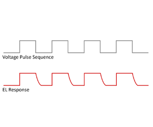 A schematic of the pulse sequence used for the TREL measurement of the LED is shown in Figure 6. The duration of each voltage pulse was chosen to be 2.5 μs, which is sufficiently long for the LED to enter the steady state regime, and the electroluminescence during the pulse therefore saturates. The region of interest is the decay of the EL following the end of the voltage pulse. This EL decay was measured using the technique of TCSPC, where the pulse sequence is repeated millions of times and the EL decay built up photon-by-photon over time.