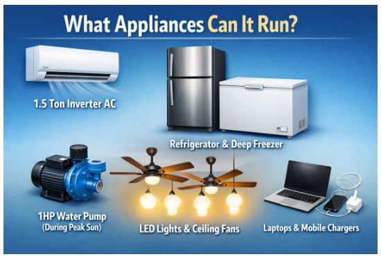 A 6kW inverter is capable of handling up to 6,000 watts of output. This means if a customer installs solar panels with a 5,000-watt capacity, the system can generate roughly 22-25 units of electricity per day. Over a month, you can expect 600 to 750 units, which covers the base load of a standard 5-marla or 10-marla house, including refrigerators, fans, and significant AC usage during the day.