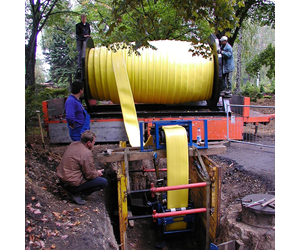 Minimising insertion forcesIn order to make the liner insertion as gentle as possible and with as little pulling force as possible, Rädlinger Primus Line now folds the liner into a U-shape instead of flat. In addition, deflection rollers reduce the insertion forces. Twist arresters for the cable winch also prevent the cable and thus the liner from twisting during insertion. An optimised insertion angle also helps to minimise insertion forces.