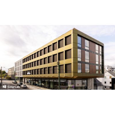 This complex 3 dimensional facade provides indoor shade and sculptural depth to the new office building, and shows that energy producing BiPV facades affords new opportunities for creative panelisation in a cladding that pays for itself