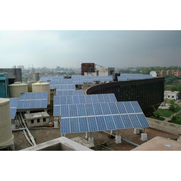 Most Indian cities are densely populated and rooftop areas are very constrained. This is a rooftop with battery backup to allow for occasions when the grid fails.