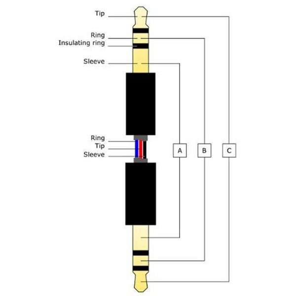 When replacing the stereo cable, it’s important to make sure the replacement jack is identical to the original, in that it has three metal segments separated by two insulating rings.
