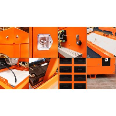 The plastic fuel tank is independent form the chassis. In this way, there is a decrease in leakage due to the absence of welding and to the transportation or movement of the genset with a forklift.