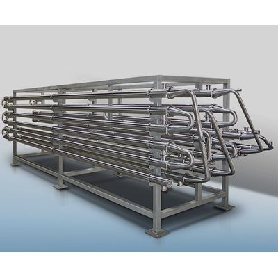 Ultra-Corrugated Double-Tube Heat Exchangers are fundamental components within the realm of tubular heat exchangers, characterized by their simple yet effective design of a tube within another tube. This configuration, with tube diameters extending up to 4 inches, is particularly suited for handling viscous products, even those that contain particulates. Ideal applications include particulate processing, direct regeneration heat recovery, and scenarios requiring product retention to minimize loss. The heat exchangers are engineered to optimize space and cost efficiency by minimizing heat transfer surface area through ultra corrugations. They accommodate diverse processing needs, with pressure capabilities reaching up to 1200 psi, and support high-efficiency operations by achieving higher Reynolds numbers at reduced flow rates. Customizable in terms of product tube diameters ranging from 1 to 4 inches, these exchangers represent a versatile and efficient solution for enhancing product integrity with low shear impacts.