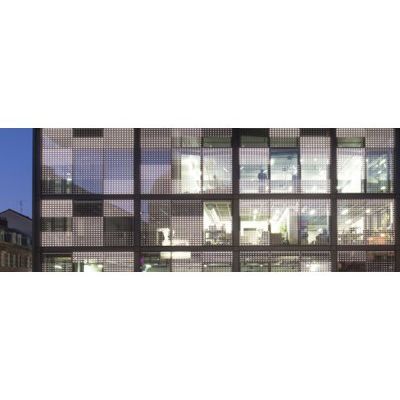 Laminated glass, incorporating LEDs without visible wiring, comes alive at night, transforming building facades into coloured displays (logos or other designs) or giant screens with moving images. By day, it becomes transparent again.