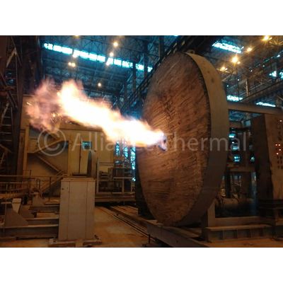 Tundish heaters from Alliance Thermal Engineers are available for different purposes: A tundish pre-heater is used for quick heating up of tundish refractory. Several small heat shields with ceramic fibre insulation shall be provided for each burner to seal the gaps around the opening provided for burner firing. Tundish heaters can be designed for a single or various heating positions. Depending on the space available on casting floor, tundish heaters can be designed to heat from longitudinal or from transversal side. The ATE tundish drier is mostly designed with the soft heating system. Very low heating rates (<10°C/h) can be attained by using excess air burners. Especially for monolithic linings the achieved temperature homogeneity is an important advantage.