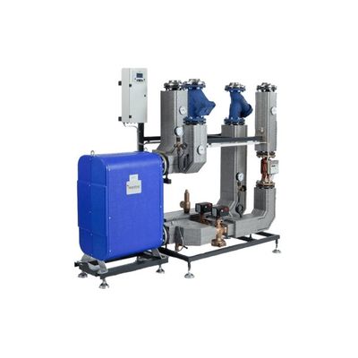 A stand frame made of square shaped steel tubes, which is provided with a special paint and mounted on height and vibration-damping feet, serves as the basic structure. The district heating station has detachable service doors on the front and back. These can also be made lockable if required. Perforated sheets along the side ensure a good thermal flow. The primary and secondary connections are on the top by default. For maintenance reasons, the heat exchanger of the Case III is mounted outside on its own vibration-free frame. The performance sizes of the systems are selected up to a maximum of 1000 kW depending on the design.