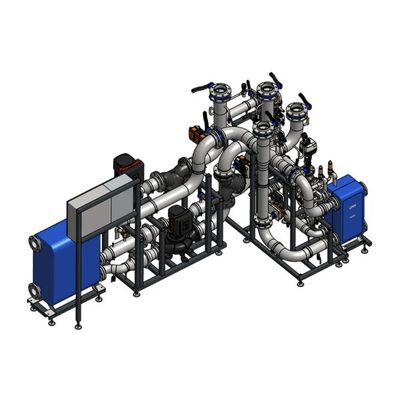 The aqoFrame district heating stations cover the power spectrum of heat transfer up to several megawatts. They contain all the necessary assemblies for connecting the building systems to the respective district heating network. A stand frame made of square shaped steel tubes, which is provided with a special anti-corrosion coating and is mounted on vibration-damped feet, serves as the basic structure. The systems are individually adapted by our technicians to the requirements of each customer. Here, outputs of up to 18 megawatts are possible. This is done in more complex cases or, on request, by means of 3D planning in our design department. Furthermore, there is the possibility of designing the system divisible for better introduction. The stations are hydraulically adapted to the customer`s control requirements,