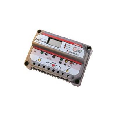 This all in one PWM controller will operate in temperatures from -40 to 850 C and features automatic equalization after deep discharges, (optional remote) temperature compensation, battery selector for charges charge voltage, and low battery load disconnect. Draws only 10 mA. The "M" series includes a digital display meter that showscharge and load currents as well as battery voltage. Five year warranty.