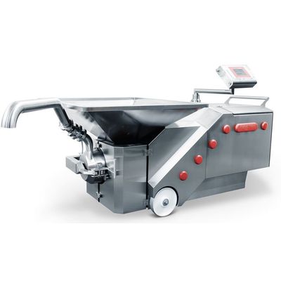 The emulsifiers (175 – 225 mm perforated disc diameter), also called NanoCutters, were developed for the production of the finest pre-cooked and cooked sausages. By using different perforated discs, the fineness of the sausage meat can be set exactly. This enables the highest quality both when very finely cut as well aswhen coarsely grained. The emulsifiers has user-friendly controls such as a swivelling touchscreen. All of the drive parts are within the machine housing and are ideally protected from soiling. In case of a faulty product, the machine will automatically switch itself off to protect the cutter insert.