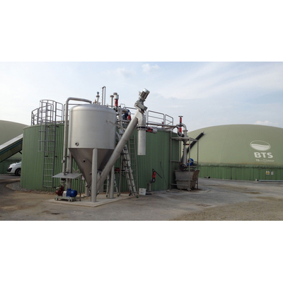 In the BIOseparator W , the biomass is cleaned of contaminants and shredded with hammers and a grinder filter and then flows into the storage tank or is directly pumped. Contaminants (glass, metals, plastics, etc.) are expelled from the exit tray. A screw extruder is integrated in the outlet mouth which uses all the liquids still contained in the contaminants and re-supplies the process.