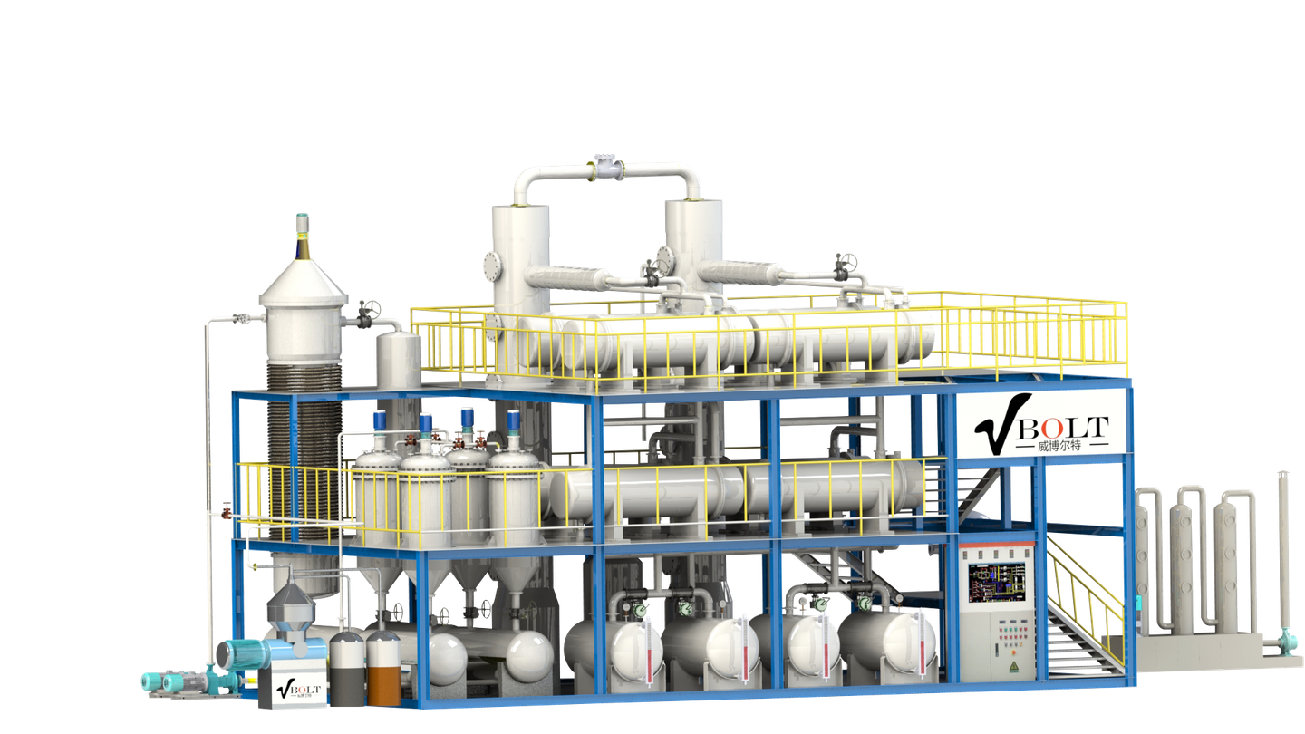 Chongqing Vbolt Machinery Manufacturing Co., Ltd. (known as VBOLT) is a professional manufacturer specialized in the development of used/waste oil to diesel distillation, used/waste oil to base oil distillation, used/waste oil filtration, pyrolysis oil distillation, crude oil to diesel distillaiton and etc. Since 2008, VBOLT has been a factory to supply double-stage vacuum oil purification system for some trading companies. And then VBOLT is constantly researching and developing in waste oil regeneration. In the latest 10 years, VBOLT has R&D multiple techniques and successfully applied for patents. These include thin-film evaporation systems, high efficiency membrane distillation systems, vacuum distillation systems, diesel oxidative desulfurization systems, chemicals recycling systems, lubricant regeneration systems etc..