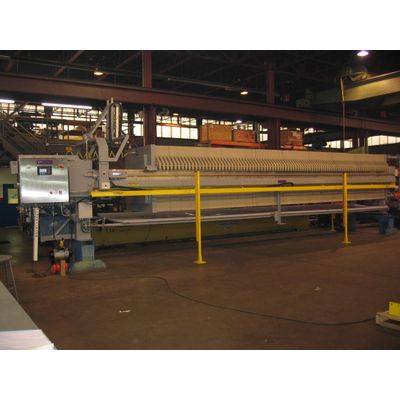The Sperry Model 1500mm Filter Press, with a 370 cubic feet filter cake capacity, is engineered for high-efficiency filtration in demanding industrial environments such as acid plants. Equipped with CGR gasketed filter plates and an EHCP electric hydraulic system, this unit ensures reliable and consistent performance. The NEMA 4x panel and HMI provide user-friendly control and monitoring, enhancing operational efficiency. The Bombay drip tray and plate shifter with a 34 gpm cloth washer streamline maintenance and reduce downtime. Currently in production at an acid plant in Mexico, this robust filter press is designed to handle rigorous filtration tasks, making it an essential asset for facilities requiring high-capacity, dependable filtration solutions.