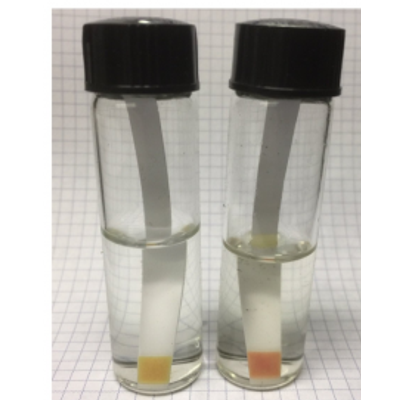 As little as 0.1% DEF will turn the strip green and the same 0.1% water will give the same reaction. At 1% DEF the strip will begin to turn BLUE in a few seconds.