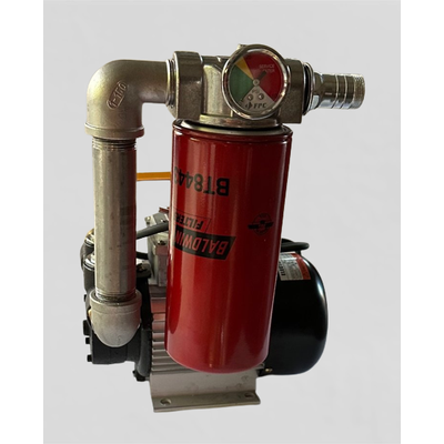 16 GPM 120 Volt Vane Pump. Hand Carry Handle. 5 Micron Filter. Filter Head with Pressure Gauge. Stainless Steel Fittings. Hose end suction strainer to protect the pump. 20 feet PVC Hose: To be cut by you to fit the job..