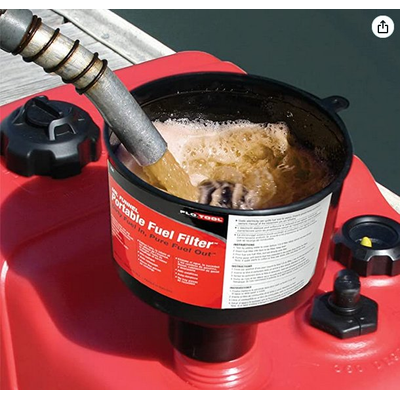 5.0 out of 5 stars Lifesaver. This thing is great. I had three gas cans tipped over during hurricane Ian, and they all became contaminated. I didn’t know what to do and then searching YouTube. I found this funnel. It worked great! I had no idea. I was worried about what I was going to do with all that contaminated gasoline and I couldn’t use my gas cans in the meantime. This was worth every penny.