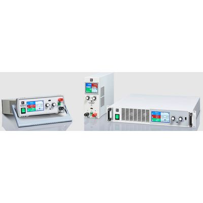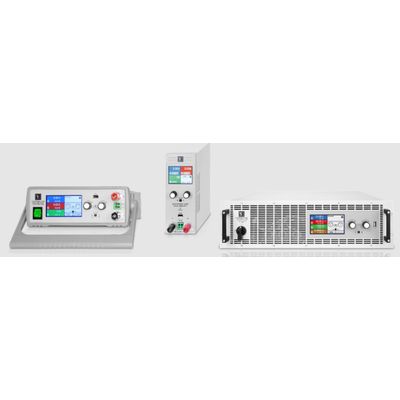 The programmable DC power supply family from EA range in power from 80W benchtop devices up to 30kW in a single chassis. High power density units can be easily paralleled up to 1,92MW in output, with up to 2000 VDC. All EA Elektro-Automatik DC programmable power supplies feature true Autoranging which automatically offers increased current at lower voltages, enabling a single supply to meet wider test requirements. The PS and PSI series feature 5 “TFT touch panel display for intuitive control, setup and programming. The intelligent interface allows you to program and test quickly without the need for extensive manual review. This user-friendly touchscreen is a feature not found on competing benchtop supplies. Most of the PS / I family of programmable dc power supplies come standard with an arbitrary waveform function generator, swappable digital interface control and built-in test routines for battery test, photovoltaic simulation and MPP tracking, to name a few.