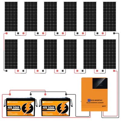 If efficiency, reliability and affordable are high on your wish list, ECO-WORTHY 2340W 48V expandable MPPT Solar Kit is an ideal choice. This system could generate approximately 9.4kWh per day. ECO-WORTHY 195 Watt 12V Mono solar panel is fully weather proof and professionally made with high quality components. 25-year linear power guarantee. ECO-WORTHY LiFePO4 Lithium Iron Phosphate Battery has twice the power, half the weight and lasts 8 times longer than a sealed lead acid battery. All in one inverter Integrated with 80A/48V MPPT solar charge controller, 5000W pure sine wave inverter in one compact unit to let you enjoy the stable power from the sun and the utility grid to keep you powered under any circumstances. ECO-WORTHY 2340W 48V MPPT Solar Kit can be used for several different purposes, including homes, cabins, etc. Whatever the kit is used for, you can rest assured that you are purchasing a quality system.