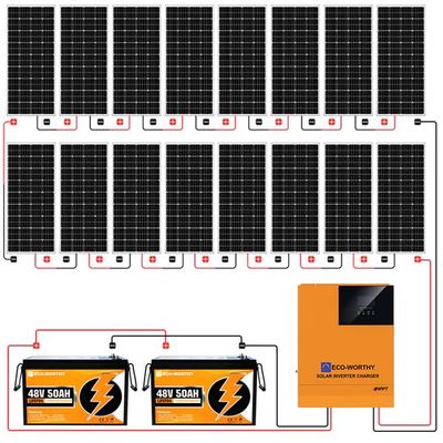 3120W 48V (16x195W) Complete MPPT Off Grid Solar Kit with 5kW/80A Hybrid Inverter + 4.8kWh Lithium