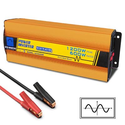ECO-WORTHY 600W Off Grid Pure Sine Wave Inverter 12V to 110V is a high-quality solar accessory that is perfect for off-grid systems, including cabins and tiny homes. A power inverter is an electrical device that transforms the DC power stored in batteries into standard household AC power for consumer electronic needs. As a pure sine wave inverter, it is capable of producing cleaner, smoother, quieter, and more reliable electricity to operate tools, fans, lights, and other electronics without interference.