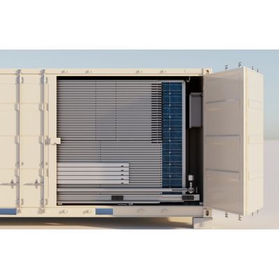 The Plug and Play solar solution from 6 to 12 panels. The Frame-Watt® 6 or 12 panels is a kit that can be installed on a modular construction, sea container or bungalow. It allows to produce energy in self-consumption or total autonomy. Transport is optimized as the systems are stackable (up to 8 units). The system can also travel on a 20' container ('Twist-lock') in a HC mode. The advantages: Dimensions on container. Humanitarian, Ecotourism, Mobile worksites, Military, Telecommunications, Agriculture, Rural electrification, Energy producers, Mining, Events, Service stations, Base camps / site facilities, Waste and water processing, Island areas, Crisis situations.