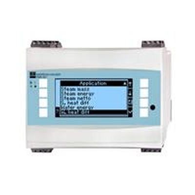 Steam and heat computer for industrial energy calculation of steam and water. The steam and heat computer RMS621 calculates steam mass, steam heat quantity, net steam quantity, steam-heat differential, water heat quantity and water-heat differential in up to 3 simultaneous applications. Bi-directional and splitting range measurements are possible. It supports analog, PFM or pulse signals for flow and pressure sensors. Temperature sensors can be connected in 3- or 4-wire connection or via transmitter. A loop power supply is available for each analog or pulse input.