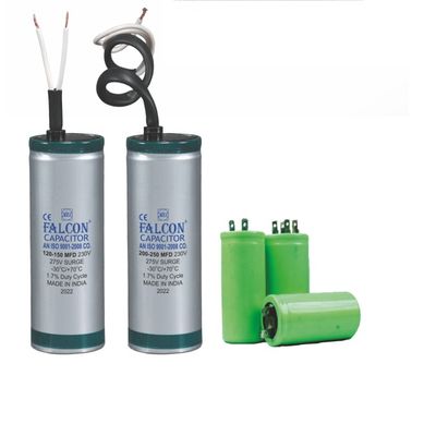 Electrolytic Motorstart Capacitors from Falcon Capacitors are built to last. Used for motor starting torque and allows a motor to be continuously cycled on and off rapidly, start capacitors from Falcon Capacitors do their job excellently. Start capacitors remain in the circuit to bring the motor to a predecided speed.