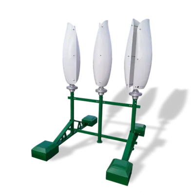 The Eco-Roof Energy Hub from Flower Turbines is engineered to deliver both wind and solar energy solutions on flat rooftops without the necessity of roof bolting. It utilizes cement-filled plates to support its components, which include three to five small tulip wind turbines and two solar panels with dimensions of 65.7 x 24 inches (1669 x 620 mm). This design aims to generate power continuously, irrespective of weather conditions, while ensuring roof preservation and ease of installation. A notable feature is the patented Bouquet Effect, which enhances the output by synergizing the performance of neighboring turbines. The system boasts specifications such as thermoplastic blades, a steel foundation, a cut-in wind speed of 1.57 mph (0.7 m/s), and a maximum survival wind speed of 120.8 mph (54 m/s). Additionally, it ensures a design life of 20 years with annual maintenance checks. The total weight of the system is 289 kg (637.136 lbs), making it a robust and reliable choice for residential and commercial energy needs.Flower Turbines - Medium Tulip Wind Turbine
