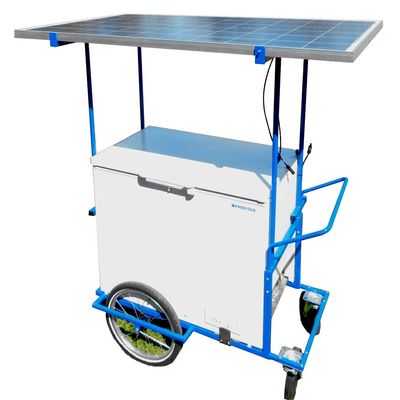 The FREECOLD® FrigoMobile is a solar-powered street vending cart, the ideal solution for developing a micro-enterprise in rural or peri-urban areas without reliable electricity grid. An actual wheeled refrigerator, it adapts especially to the street vending of fresh or frozen products on markets and tourist places.
