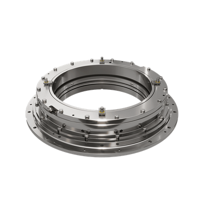 Radial type seals are integral to the efficient operation of hydroelectric turbines, pump-turbines, and large pumps. These seals may require two or more carbon segmented sealing rings depending on design parameters such as pressure, speed, and vacuum. Custom-designed for a wide range of equipment, these seals are straightforward to install, self-adjusting, and easy to maintain. Fugesco offers both split and non-split versions, manufactured to client specifications. A key component is the precision sleeve, mounted on the turbine shaft, which works with the carbon sealing rings to perform the essential sealing function. The sleeves, also available in split and non-split versions, are made from various materials based on service conditions. Radial seal operational limits include a maximum turbine operating pressure of 140 to 280 kPa, barrier water pressure of 20-35 kPa above turbine pressure, and water filtration to 25 microns. Optional features like splash guards, reservoirs, RTD's, wear indicators, and inflatable maintenance seals are frequently added based on client needs. Composite designs reduce the weight of seal components, generating cost savings during installation and maintenance outages.Fugesco - Axial Turbine Seal for Hydroelectric Turbines and Large Water Pumps