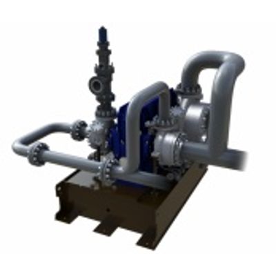 TR HI 150 is a special machine for reducing the pressure of water, designed for extremely low currents of steam with a high requirement for safe, mechanical run with a high effectiveness. The turbine case together with the el. generator stator forms a unit without a gear and without secondary rotating parts. The turbine wheel is connected to a high frequency el. generator. Impermeability of the steam system is assured through a contact valve. The turbine includes a complete oil system for supplying the grease.