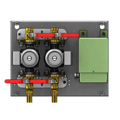 Flo-Link variable speed panel mount flow centers includes all of the controls, sensors, and fittings necessary for connecting to the ground loop (1-1/4” PE fusion) and the heat pump (1″ FPT, 1″ swivel union, or double O-ring female union). Flo-Link variable speed flow center kits are required when you wish to have a pressurized variable speed pumping solution with a geothermal heat pump that does not include variable speed controls. If your heat pump has built-in variable speed controls, you can use a standard FL flow center with variable speed pump(s).