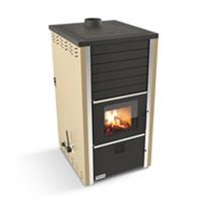 Hydrolic ready system (Circualtion pump, safety valves, thermostad, airflow controller and connections). Easy-move cast iron grate. Cooking surfaces top on stove. Fireplace View. To burn wood, coal and briquette. Thermal safety valve. Semi auto airflow controller ( 40 C - 80 C ). Manuel secondary air .