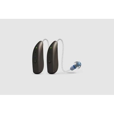 Traditional medical grade Receiver-in-Ear (RIE) hearing aids.