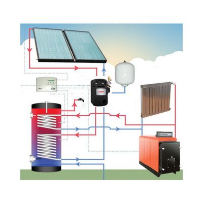 Fresh water production through twin line solar station NOVASOL DUO with controller adapter, solar panels and integration with gas wall hang boiler