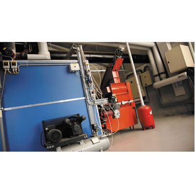 Linka’s fully automated wood chips system consists of a scraper unit, which supplies a constant feed of the pre-set amount of wood chips. The system ensures a complete burnout of the wood chips and efficiencies of up to 96.7 percent.