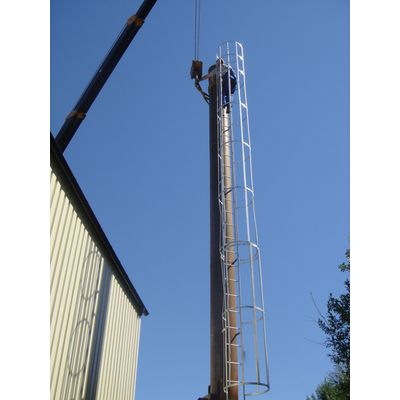 Steel core chimney made of Corten steel for durability. Insulated with foil faced mineral wool. The chimney must be mounted on cast base with bolts. Available in variable height with / without ladder and security. Available from Ø250-Ø450.