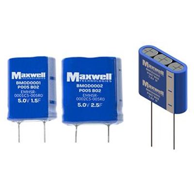 The 5.0 and 7.5-volt small cell modules are available in 1.0, 1.5 and 2.5 farad versions and are suitable for applications that require pulse power in small form factors.