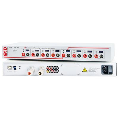 You simply activate the devices you really need. This gives you the benefit of saving electricity, protecting your hardware and your computer is not compromised in its performance. Due to the new USB 3.0 Standard integration, the data transfer rate will increase tremendously. This USB hub 3.0 has eight downstream ports, which can be turned on and off individually via USB. When switching it off, the supply voltage (+5 V) and the data lines on the semiconductor switches are separated. A useful feature is that there are additional connections at each port on the connected devices that can be supplied with an externally supplied voltage of maximum 30 VDC. A storable number in the device helps distinguish multiple USB hubs on a PC.