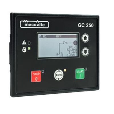 Despite its compact dimensions, GC250 includes all the main engine and alternator protections you need, such as oil pressure, coolant temperature, frequency, voltage, current power and fuel level. The same controller can be used for electronic engines with CAN interface J1939 and MTU MDEC protocolsor used on traditional (nonelectronic) engines. Configuring the inputs, outputs and protections, GC250 can be easily adapted to suit a wide range of applications. GC250 offers a wide, graphic display, providing icons for alarms/ warning and for signalling the status of the engine, controller and data logs.