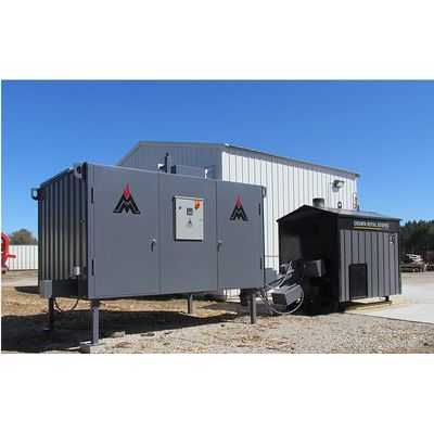 The automated outdoor wood boiler system is a partnership between Messersmith Manufacturing who supplies the fuel handling system with integrated controls and Crown Royal who supplies the hydronic wood chip boiler. The package is an automated system with an enclosed fuel storage bin incorporating Messersmith’s travel auger system along with a series of conveyors to transport the fuel into the wood boiler system where it is burned. The system is capable of burning wood chips, sawdust, wood pellets or pelletized coal.