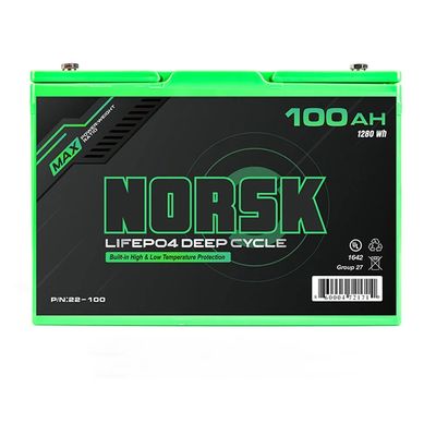 Half The Weight And 2X The Run Time: The Norsk 100ah 12.8v LIFEPO4 Deep Cycle is half the weight and 2X the run time capacity as most traditional lead batteries! These batteries are engineered with Lithium Iron Phosphate (LiFePo4) chemistry which is the right choice for these applications!