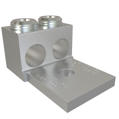 Aluminum Mechanical Lug, Conductor Range 250-6, 2 Ports, 1 Hole, 3/8in Bolt Size, Tin Plated, UL, CSA.