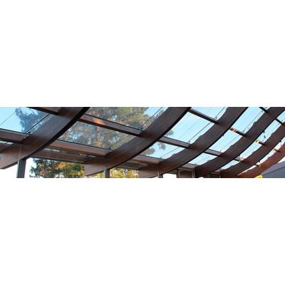 Crystalline silicon glass features more power installed per SqFt in comparison to amorphous silicon glass. This means that under direct sunlight crystalline silicon glass can yield twice as much energy as amorphous silicon glass. This PV glass technology is suitable for those buildings and facilities with good solar orientation which seek maximum energy output. Crystalline silicon PV glass is the most suitable material to be used on canopy and skylight applications, spandrel glass, solid walls and guardrails. PV glass presents the same mechanical properties as conventional architectural glass used in contruction for architectural purposes.