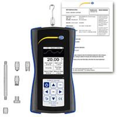 PCE-DFG N Digital Dynamometer for tensile force measurement and pressure force measurement up to 20 N / Very high accuracy / Sampling rate 1600 Hz / 6 different measuring tips / USB interface / Software / Calibration certificate. A digital force gauge for tensile and compressive force measurements up to 20 N is available with the PCE-DFG N 20. The PCE-DFG N 20 is a digital force meter for precise measurements with a resolution of 0.01 N. The measured values are displayed on a large, illuminated, 180° rotatable display, a correct reading of the measured values is thus guaranteed at all times. The outstanding accuracy of ± 0.1% FS is confirmed with the factory calibration certificate provided.