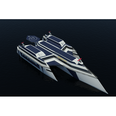 TRIVAL is the first generation of renewably powered ship that can travel around the globe without any need to stop to port to refuel or to resupply. We have envisioned TRIVAL as en scientific cruiser with speed of a yacht and utilization of research facility. It is powered by wind and sun. TRIVAL power source consist of four VETROsails with total of ten VETAR 15 advanced wind turbines with joint power of 150 kW per hour. In addition to wind energy it has another 150 kW of solar power distributed throughout and at top of the ship. With 30 MWh of power storage, 6000 kW propulsion system and maximum of 300 kW of power generation, TRIVAL can travel at speeds beyond 50 knots - well above any sail ship, or traverse distances around the globe well beyond any traditional fossil fuel powered sea vessel.