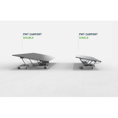 PMT carport solutions will sensibly utilise the asphalt desert in large car parks thanks to economical, independent electricity generation. The proven driven pile foundation can be implemented without extensive surface preparations or cost-intensive foundation work. In addition, our carports will win you over with absolute weather protection for all types of vehicles.
